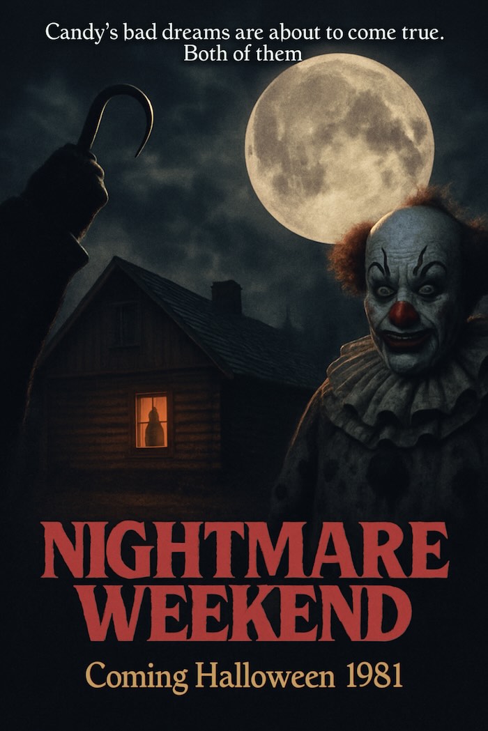 NOT the film released in 1986 (filmed in 1984) about a female scientist who turns three girls into monsters (nor the UK retitling for SLEEPAWAY CAMP (1983)). The script for NIGHTMARE WEEKEND (dated October 28, 1980) by Richard Natale features two slasher villains: an undead man with a hook for a hand and a psychotic clown who stalks and kills teenagers, as well as menaces a babysitter and her younger siblings at a remote house. It also has the distinction of killing off several young children, a Ouija board, and half the movie being a nightmare…