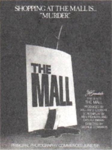 Hemdale - who would hit pay-dirt a few years later with THE TERMINATOR (1984) - had distributed the New Zealand lensed semi slasher STRANGE BEHAVIOIUR (aka DEAD KIDS) that year. However, neither this nor their other quasi slasher project THE GRADUATION PARTY (Paul Lynch’s mooted follow up to the previous year’s PROM NIGHT (1980), which had Maniac’s Joe Spinell hunting marooned teenagers on a deserted island) came to light - presumably after failing to secure full funding at the festival. However, Starburst Magazine did state that THE MALL was “currently before cameras” (although, seemingly contradictorily, it also stated that the role of the killer had not yet been cast). If any footage was shot (principal photography was due to commence on June 15th - a month after Cannes), it’s sadly never seen the light of day.